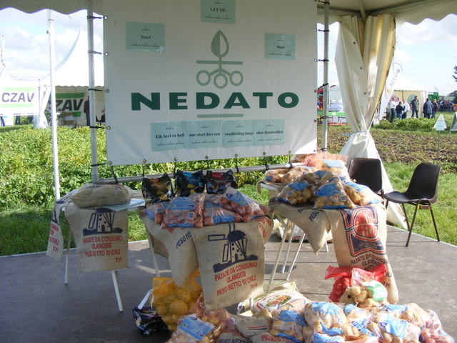 "Teler krijgt bij Nedato premie voor betere schilkwaliteit aardappelen. "Nu kan de Nederlandse huisvrouw ook in maart, april en mei mooie, blanke aardappelen kopen!"