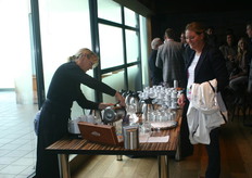 Aan het begin van een stralende dag: Hartelijk welkom in de kroeg van Green Pack. Rechts: Henriƫtte Drost
