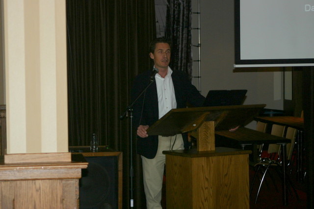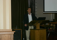 De managing director Niels Sneek houdt een korte bedrijfspresentatie over de 12,5 jarige geschiedenis en de toekomstplannen van Daily Fresh Logistics.