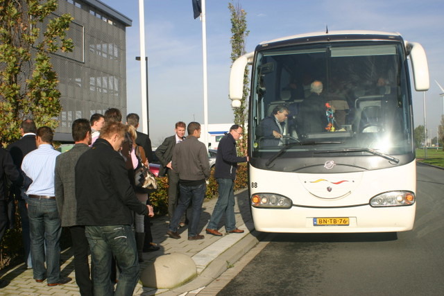 We vertrekken met de bus naar de terminal van Stena Line in Hoek van Holland