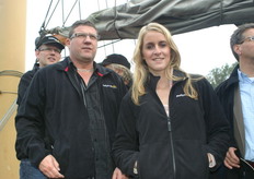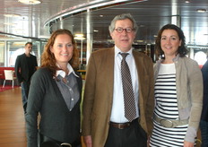 Pim de Lange, met links zijn huidige secretaresse Suzan Ahlrichs en aan zijn rechterzijde Linda Michon, zijn voormalige secretaresse