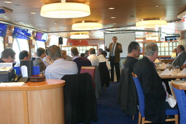 Nog een korte toelichting door Pim de Lange en we worden aangeraden om zeker eens mee te varen met de Stena Hollandica