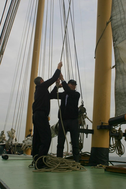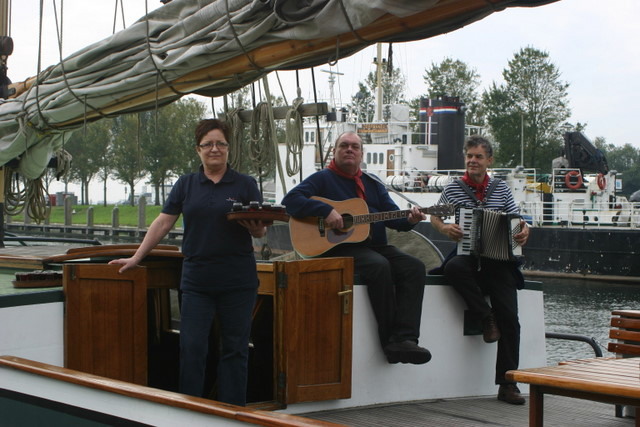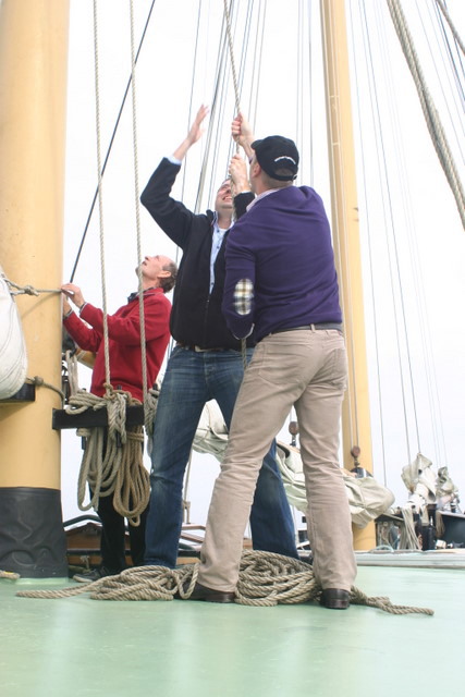 "Aanvang van het ontspanningsprogramma: Aan boord van driemaster "de Oostvogel" in Hellevoetsluis"