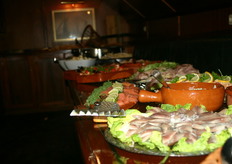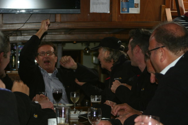 Eet smakelijk! Links Ton van Maanen (Witkamp) en onze Engelse gast Marc Niccol, Dirian en Lex