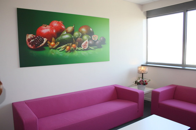 Door het gehele pand zijn prachtige afbeeldingen van groenten en fruit te vinden.