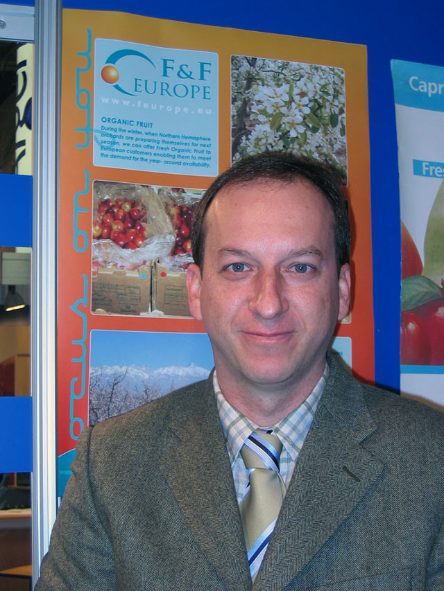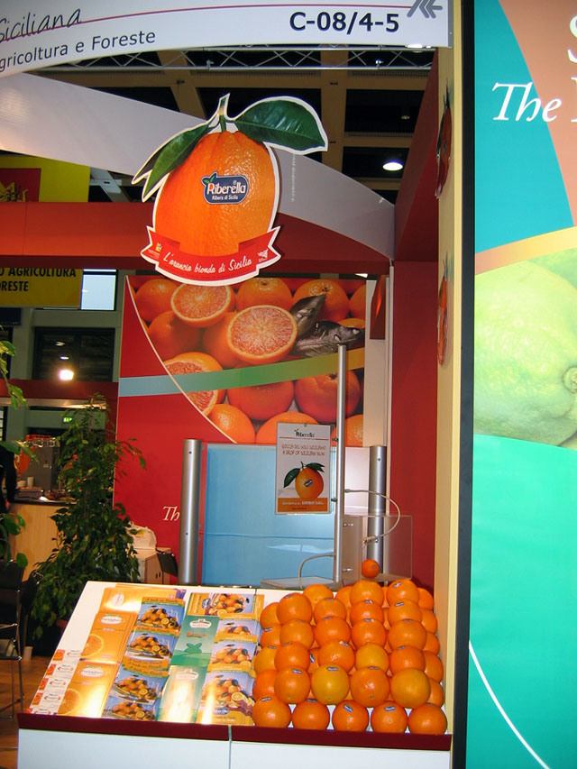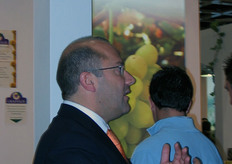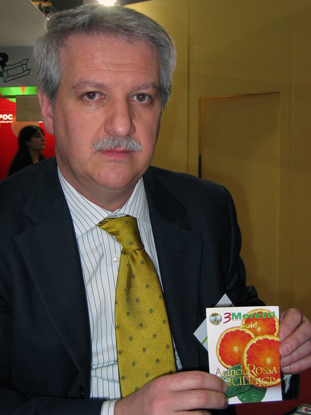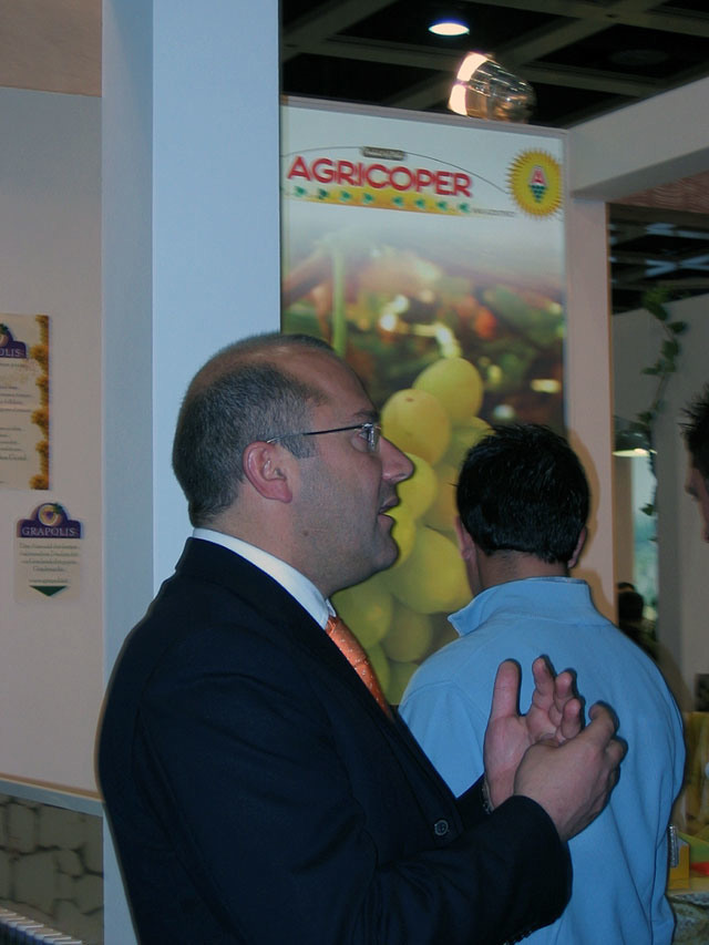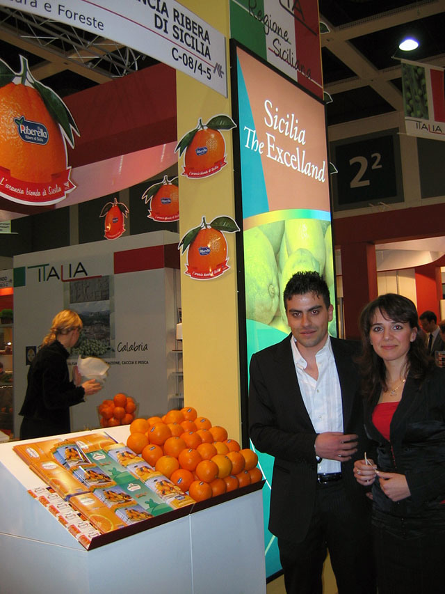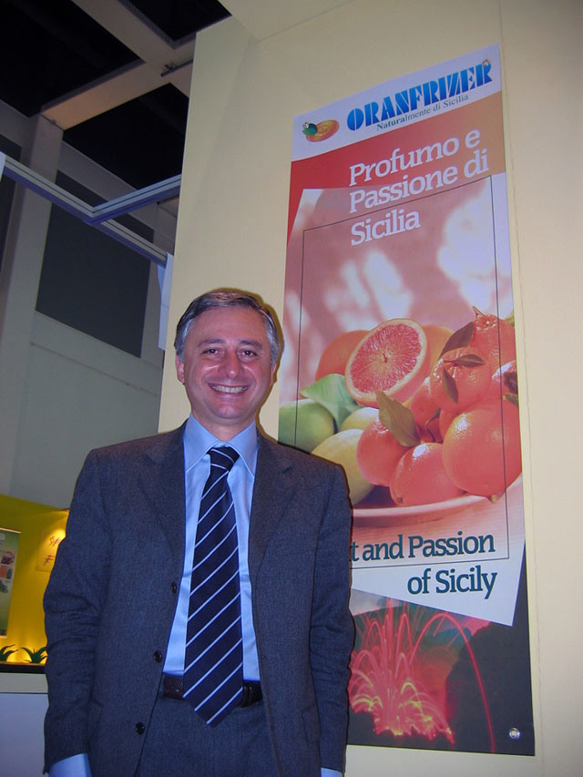 Oranfrizer marketing manager Salvo Laudani. The stand Oranfrizer was placed within the Italian exhibition (Piazza Italia) at Fruit Logistica
