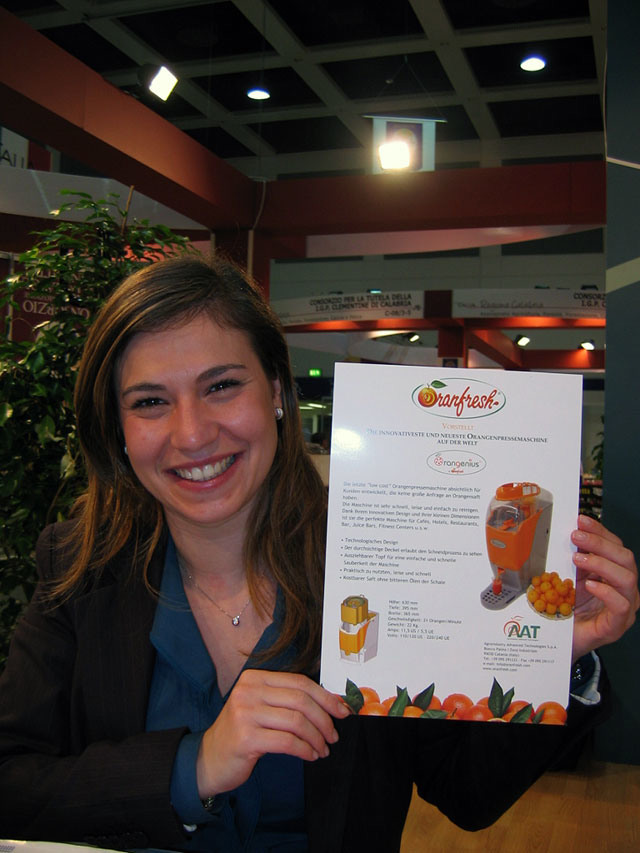 Manuela Nicolosi from Oranfresh sales department presenting new juicer Orangenius