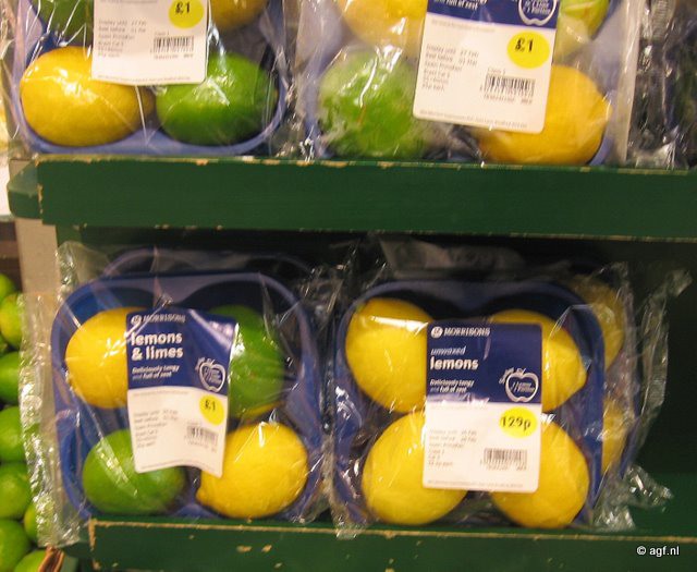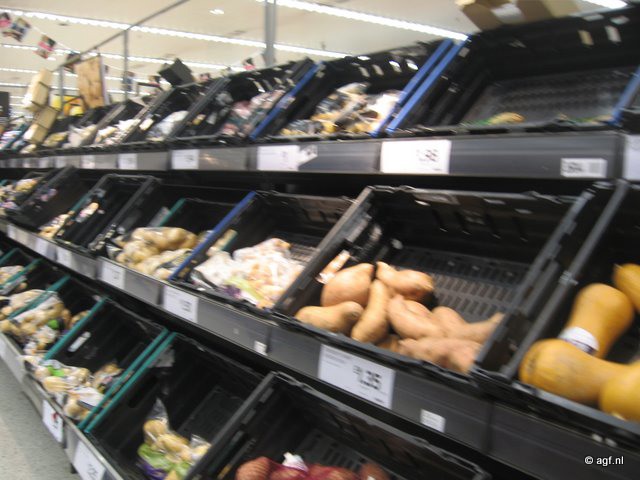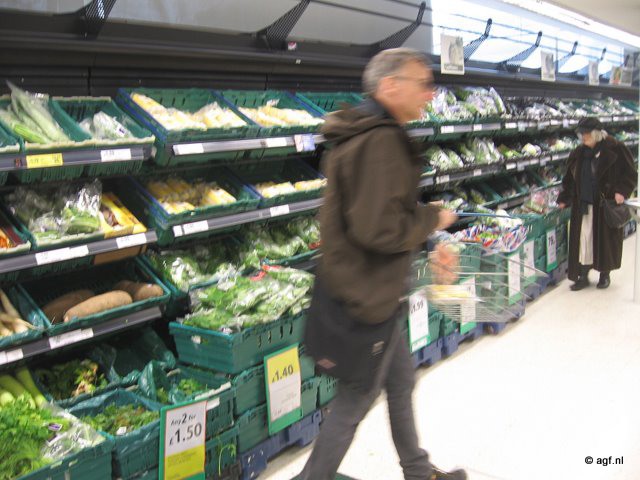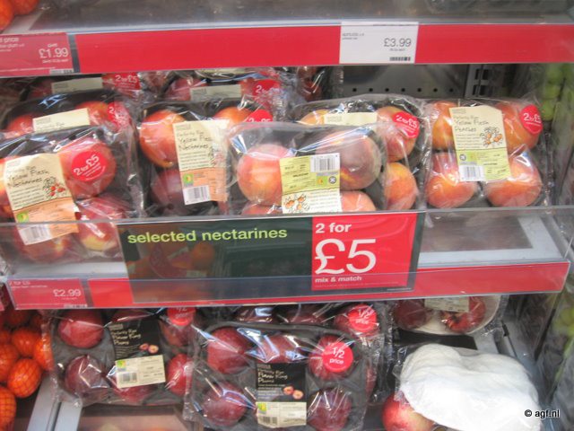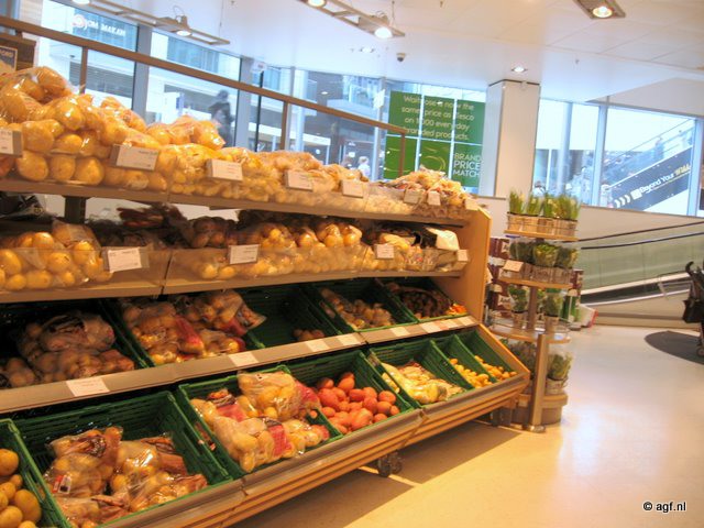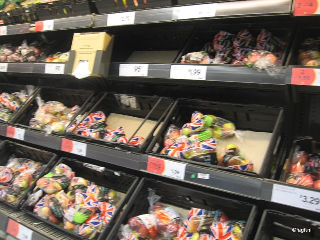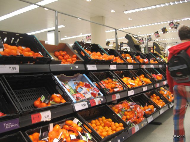 Sainsbury's; citrusschap. We hadden de pech dat de schappen behoorlijk leeg waren