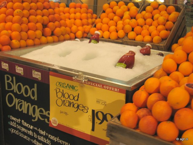 Whole Foods; bloedsinaasappelen: vers en geperst