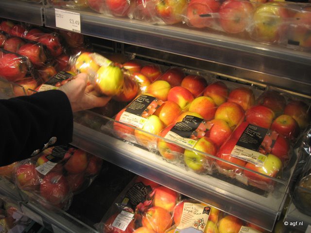 Marks & Spencers; kleine Jazz appelen in flowpack zonder schaal