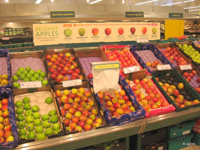 Morrisons; wegwijzer voor de vele verschillende appelen