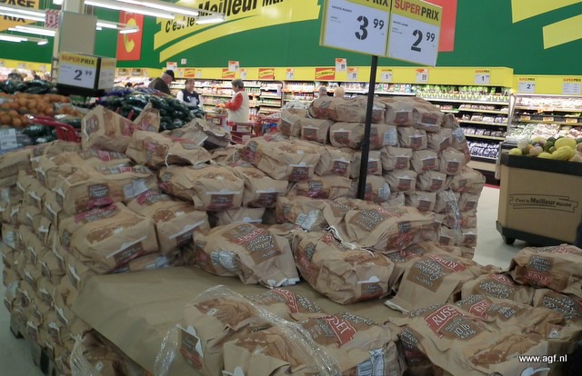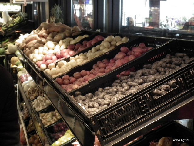 een consument pakte een paar blauwe aardappelen en daarna wat rode