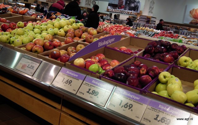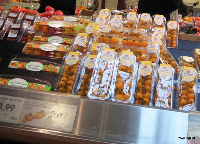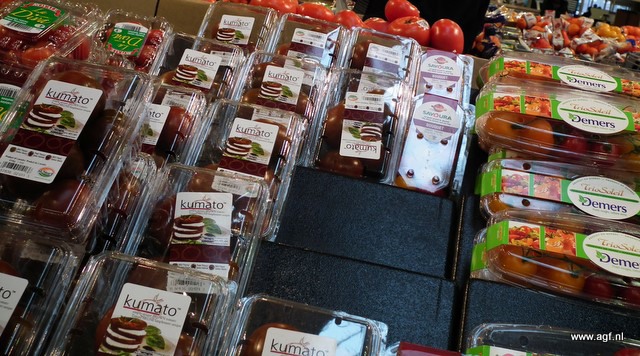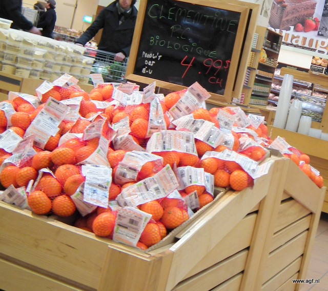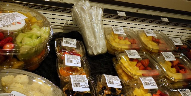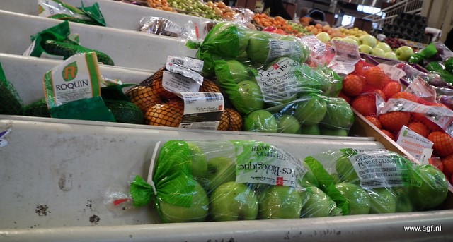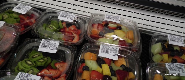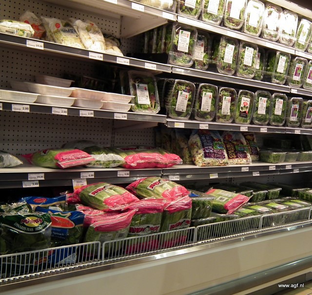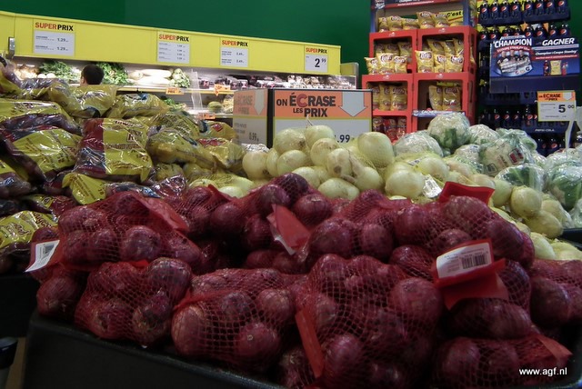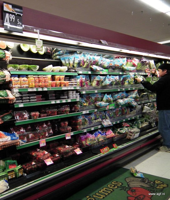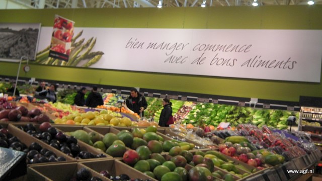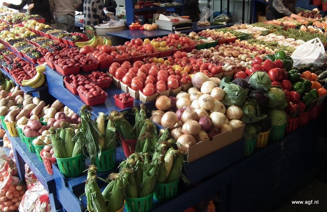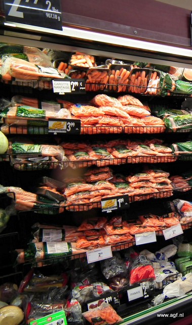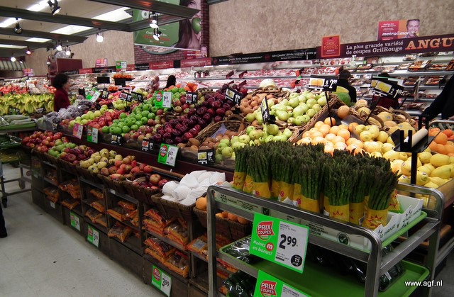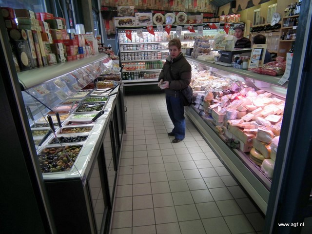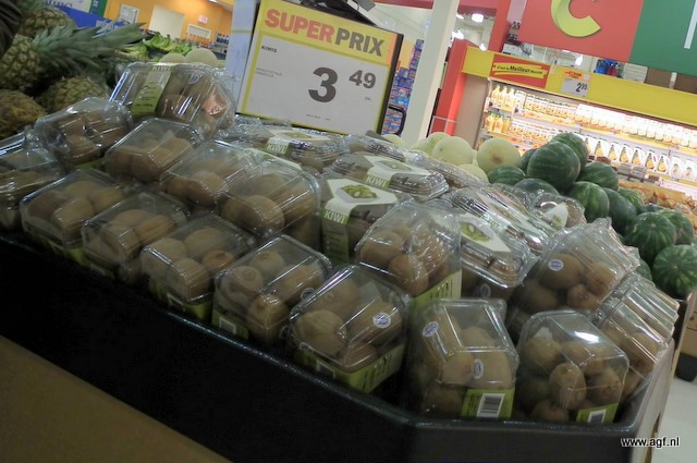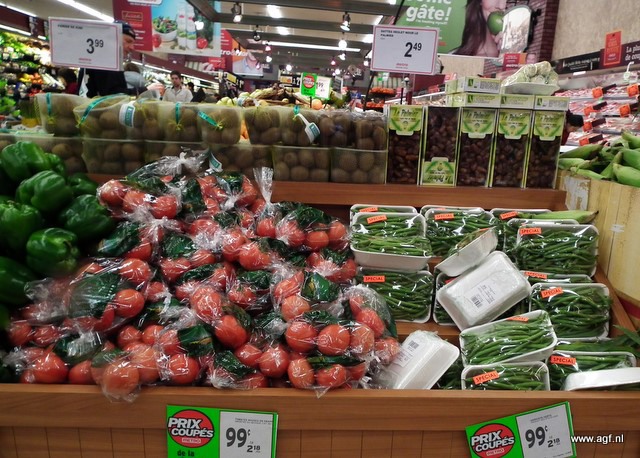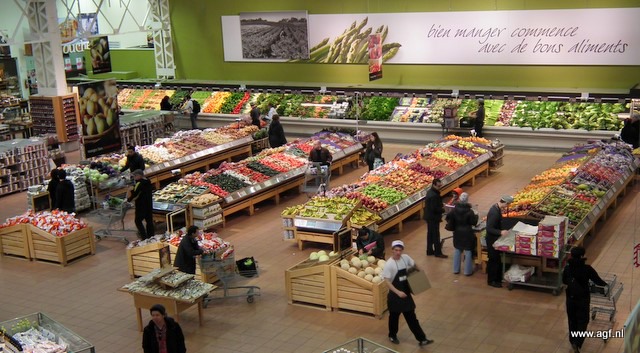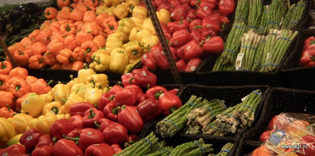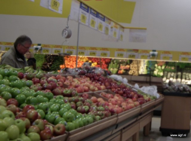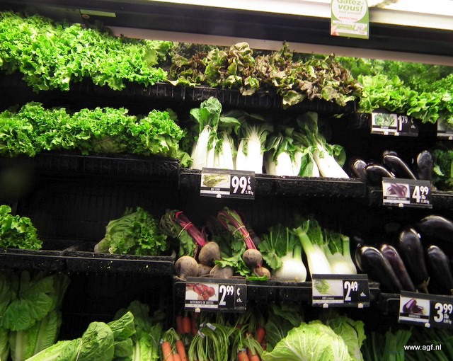 AGF-speciaalzaak met buiten een stalling verpakte agf en