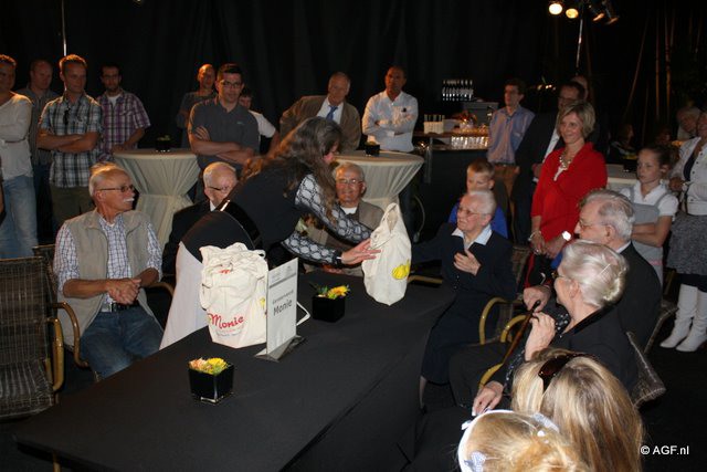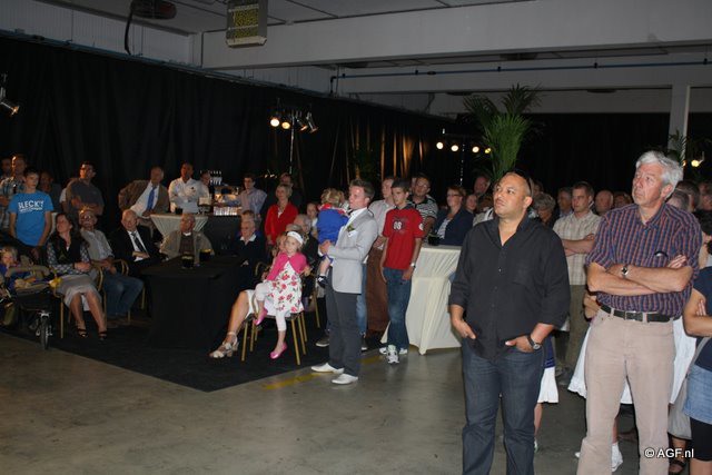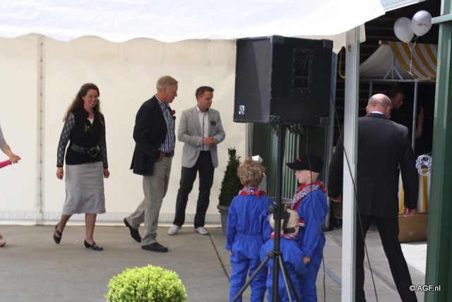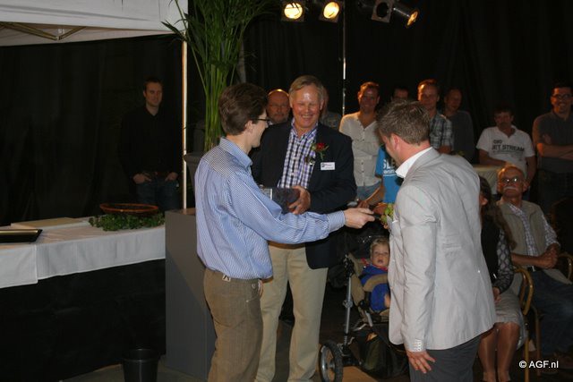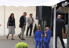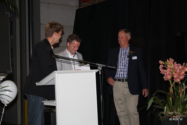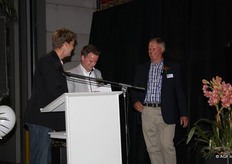 Gijsbrecht Gunter feliciteert zijn schoonvader Wim en zwager Eric namens de familie
