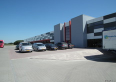 Het nieuwe pand met in het midden de ingang van het kantoor.