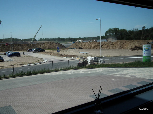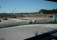 Men is druk bezig een nieuwe op- en afrit te maken nabij het nieuwe pand van Weyers. Links de ruime parkeerplaats voor het personeel van de firma.