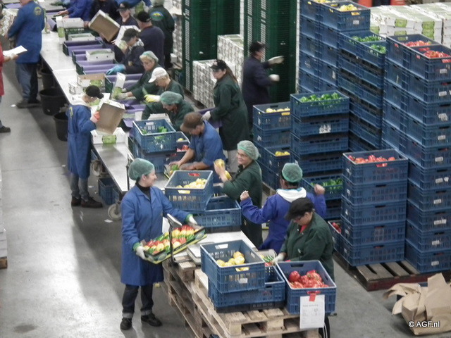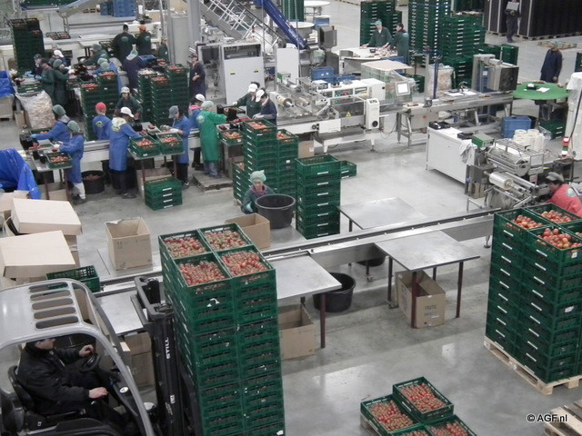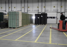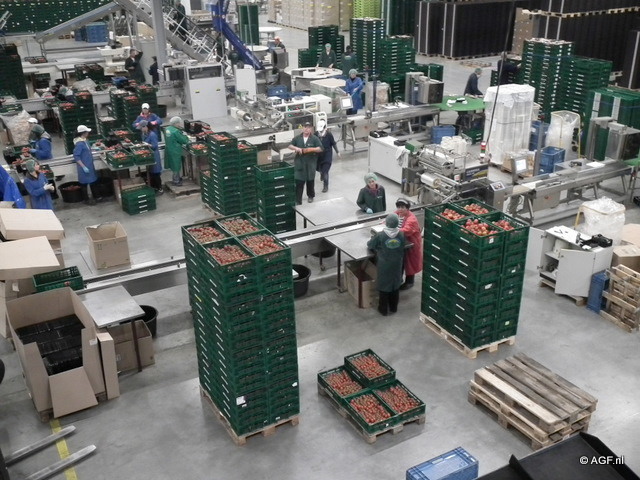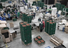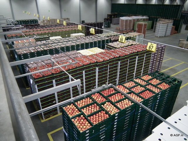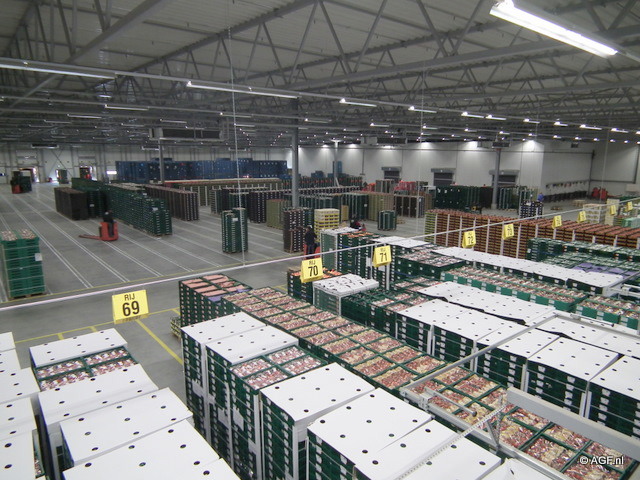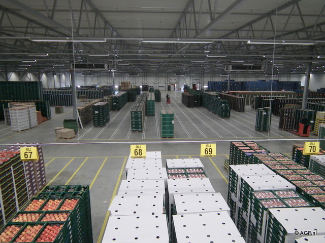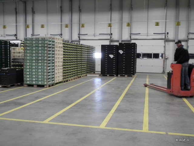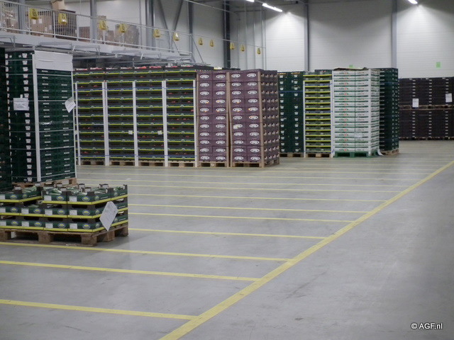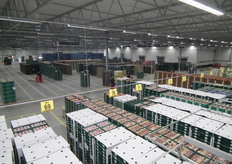 Mooi overzicht van de werkvloer. Helemaal achterin wordt de aanvoer gelost, in het midden opgeslagen en vervolgens klaar gezet voor de laaddocks.