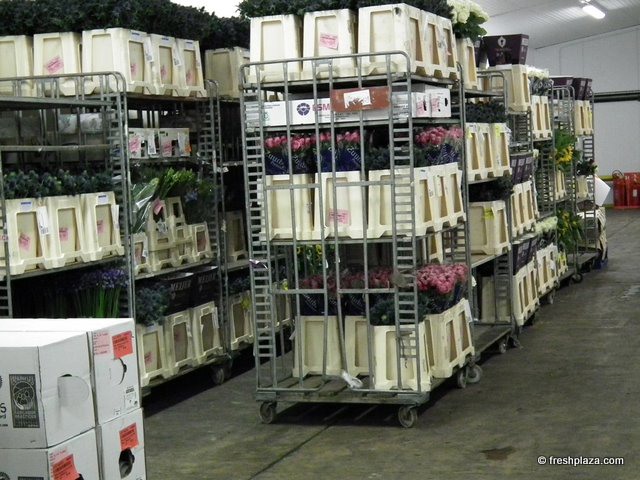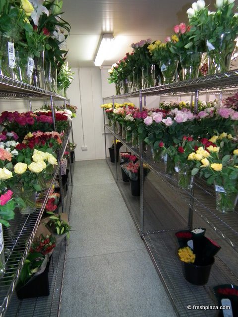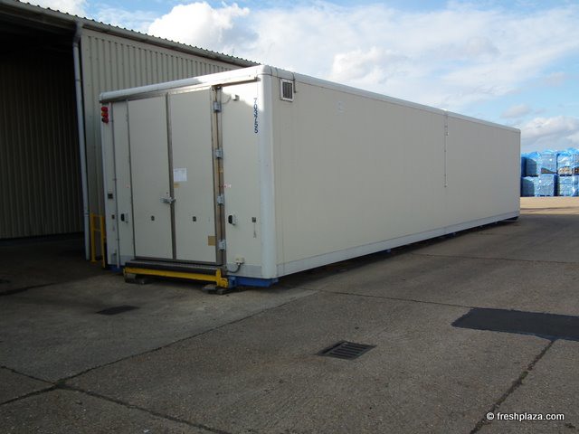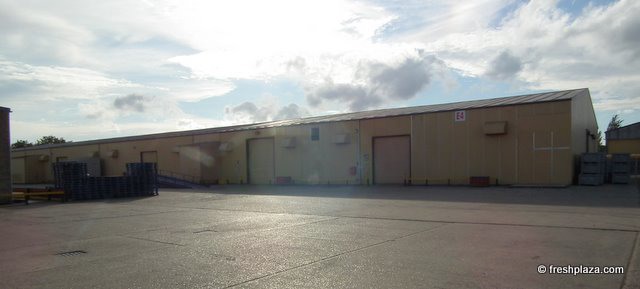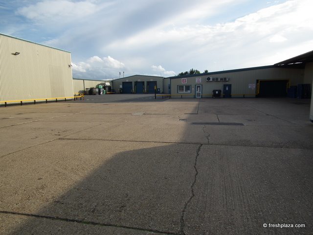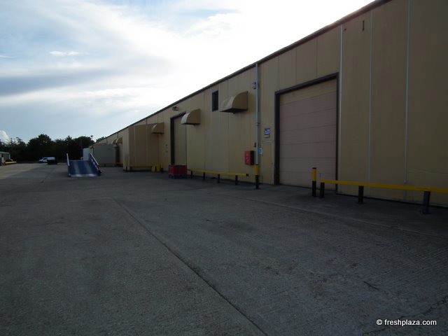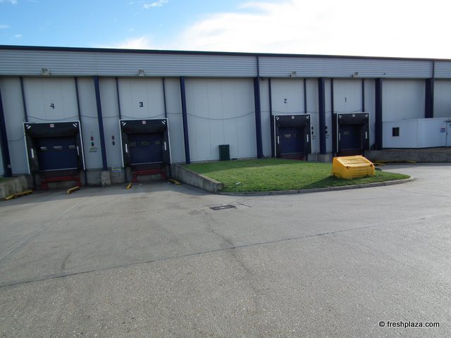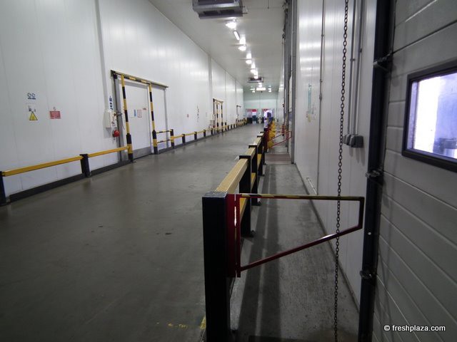Links enkele koelcellen en rechts docks. Voor de laaddocks is een wandelpad met poortjes voor voetgangers