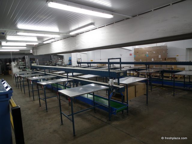 In deze ruimte worden dagelijks grote hoeveelheden punnets verpakt. Er was sprake van een record: op 1 dag 600.000 punnets in 24 uur.
