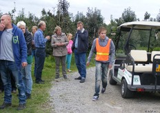 De bezoekers werden naar de tent in de boomgaard gebracht