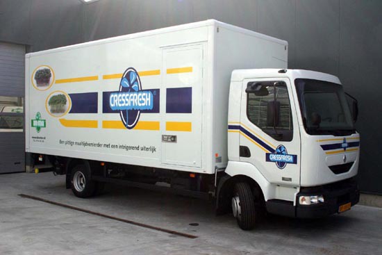 De nieuwe vrachtwagen speciaal voor de bestellingen buiten de regio Westland.