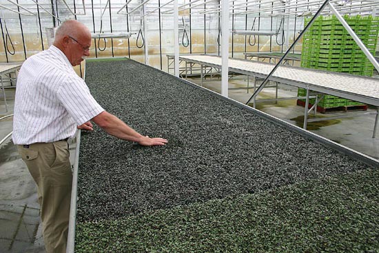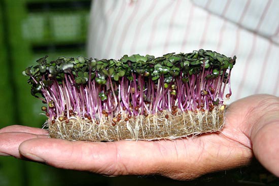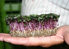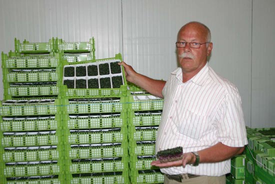 Henk Overkleeft toont de purpercress, waar de afzet gestaag van groeit.