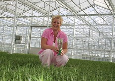 Miranda poseert tussen de nieuwe producten in het assortiment: verse kruiden in pot.
