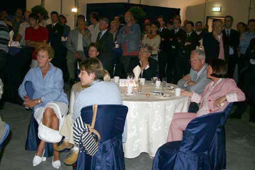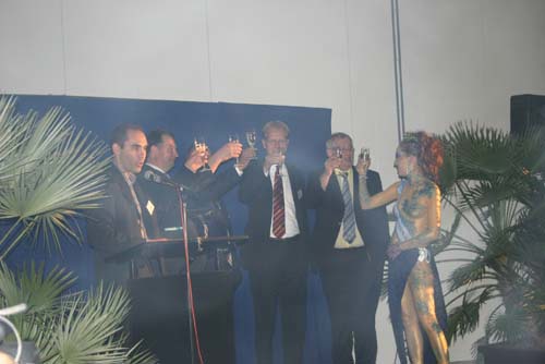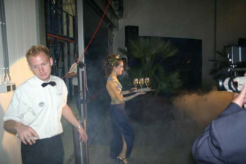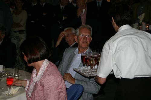 Champagne wordt uitgereikt.