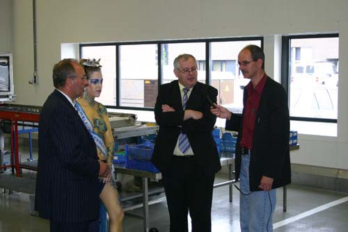 Theo Doeven, Miss Blauwe Bes en Ger Driessen worden door de regionale tv geinterviewd.