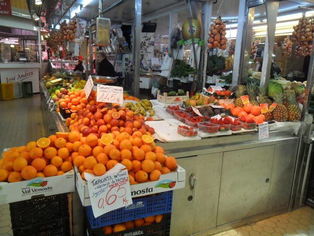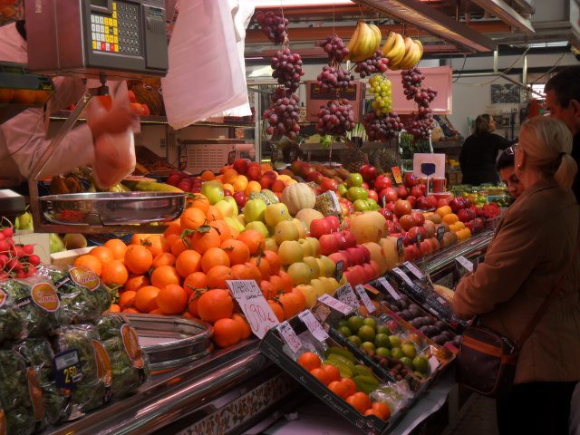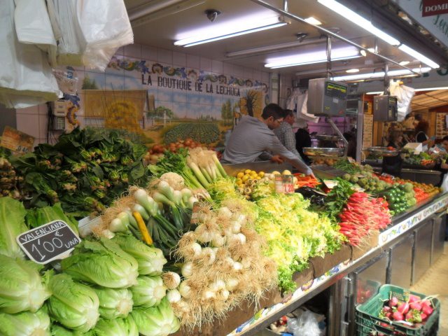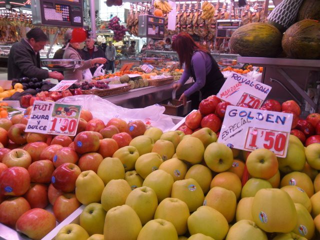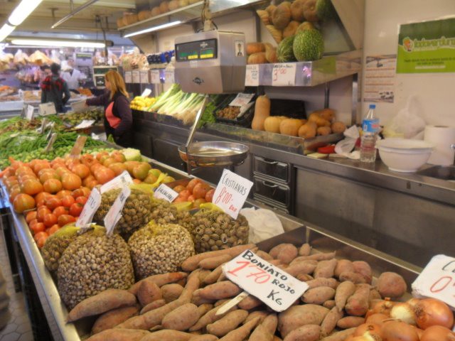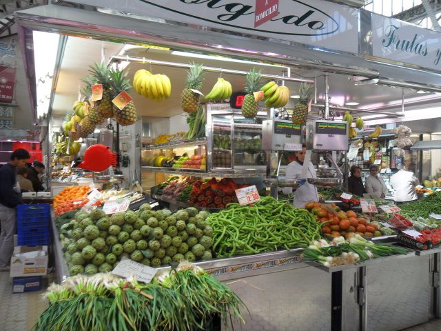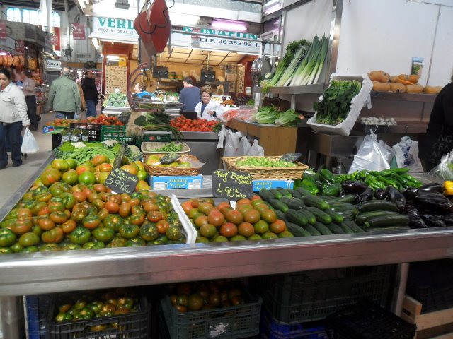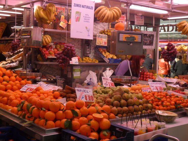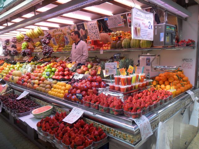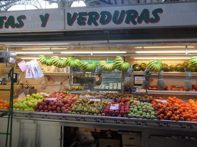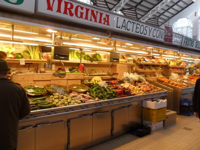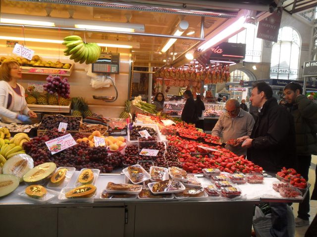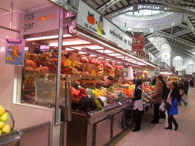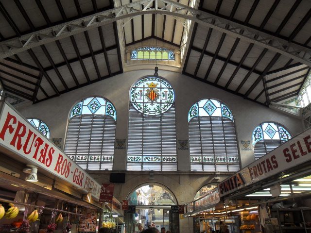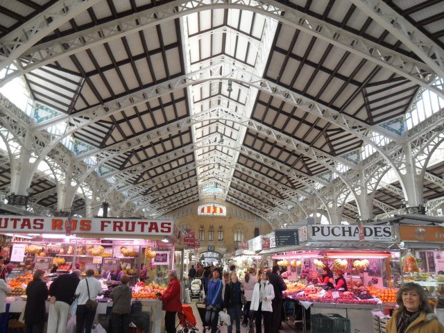 Mercado Central in Valencia. Pas aan het begin van de 20ste eeuw kregen de marktkramers er hun eigen overdekte ruimte, die tussen 1910 en 1928 gebouwd werd. Hiermee was het meteen ook een van de meest opmerkelijke modernistische gebouwen van Valencia.