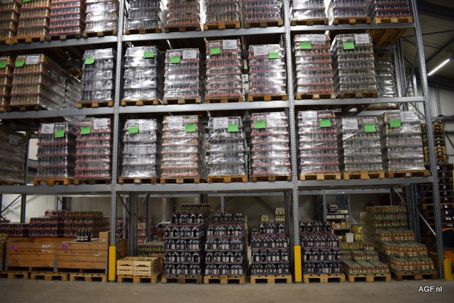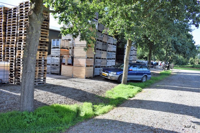 Fruitkisten staan klaar voor verwerking
