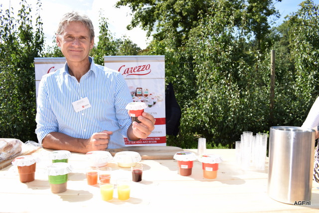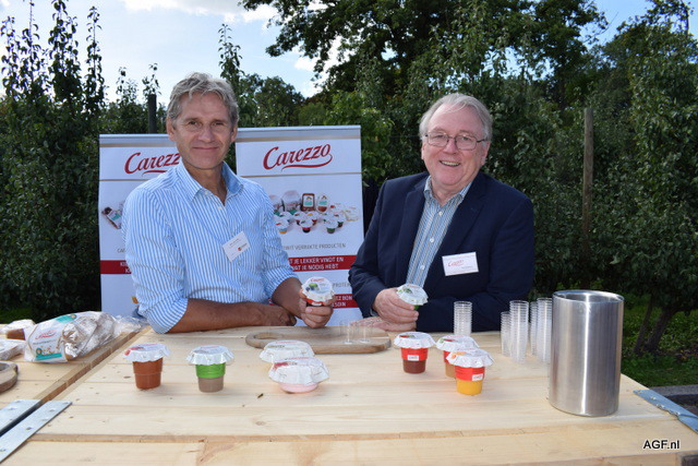 Wim van Cuijk (l, met een verleden bij The Greenery en Fruitmasters) en Fred Bergmans van Carezzo, met diverse eiwit verrijkte voedingsmiddelen, zoals vruchtensappen, ijs, brood en soep. "Voor elk moment van de dag"