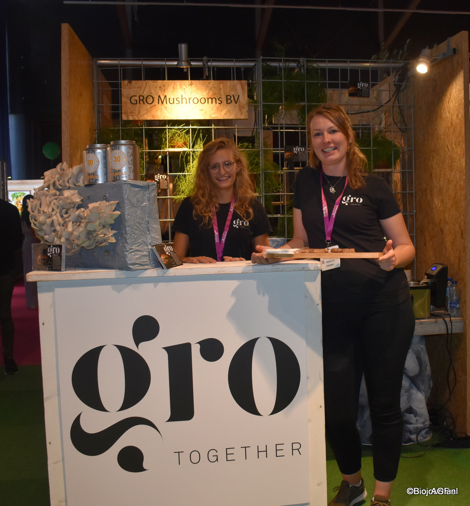 GRO Mushrooms werkt samen met Santas-koffie voor het ophalen van de koffieresten. Op de foto Aster Schiltman en Leonel van der Steen.