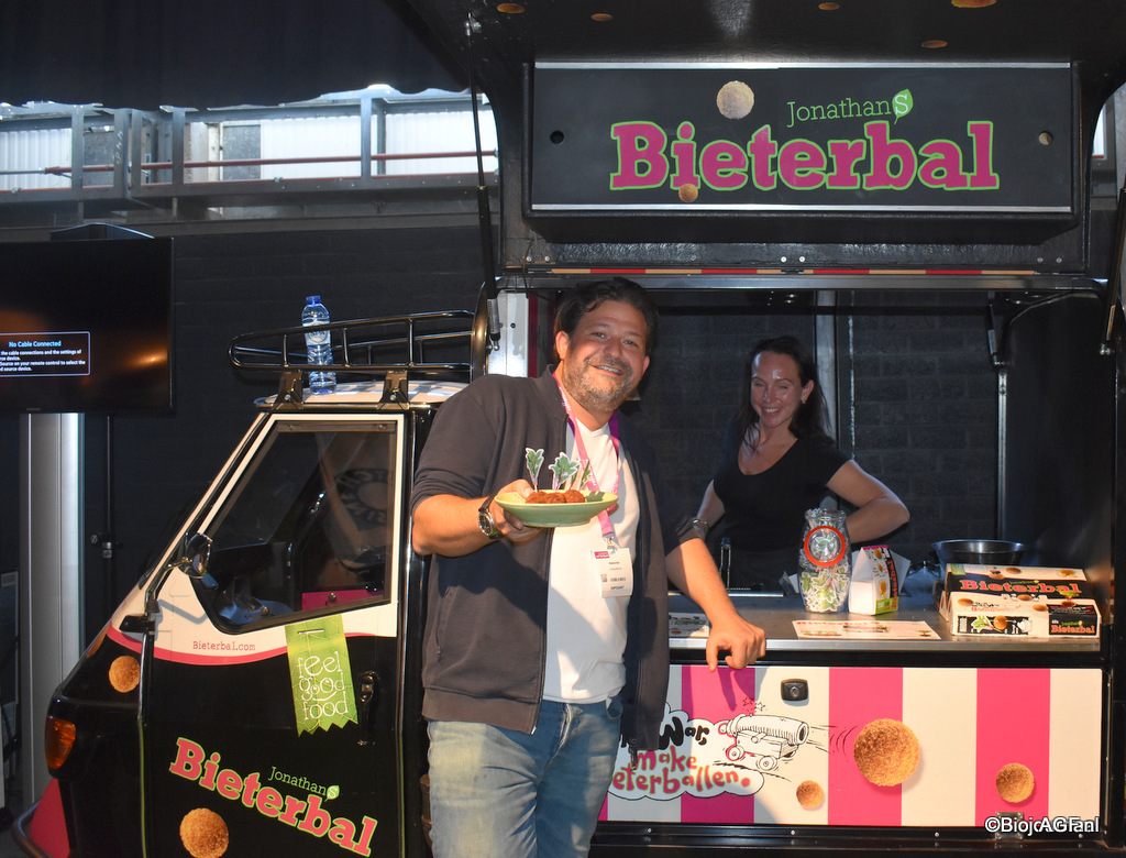 Jonathan en Willeke Karpathios tonen hun Bieterbal: een bitterbal gevuld met bio-dynamische rode bieten.