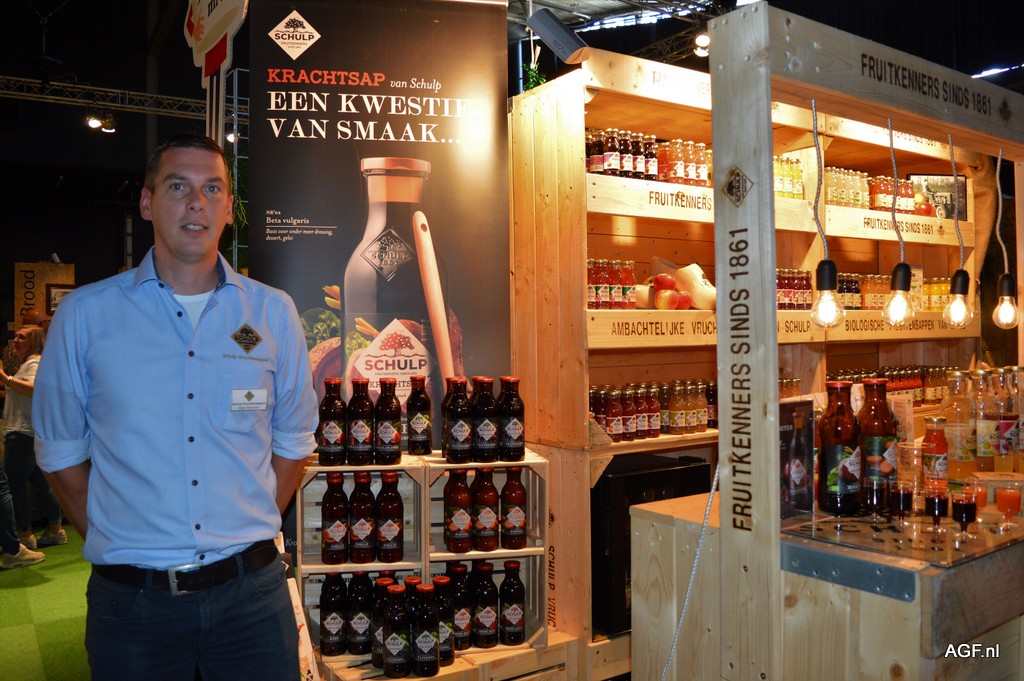 Elger Wiersma van Schulp Vruchtensappen. Vooral de krachtsap werd goed gepromoot voor de horeca ondernemers.