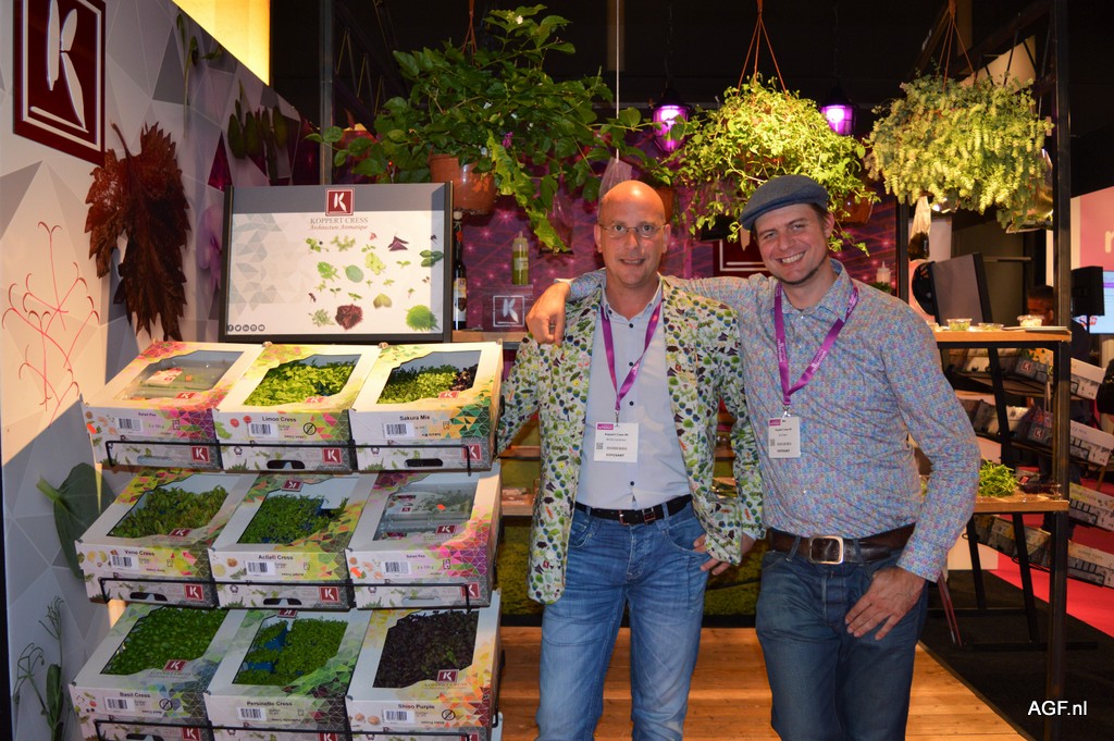 Michel Lankhaar en Jens Baan van Koppert Cress. Thema van de beurs was: cress als ingredient.