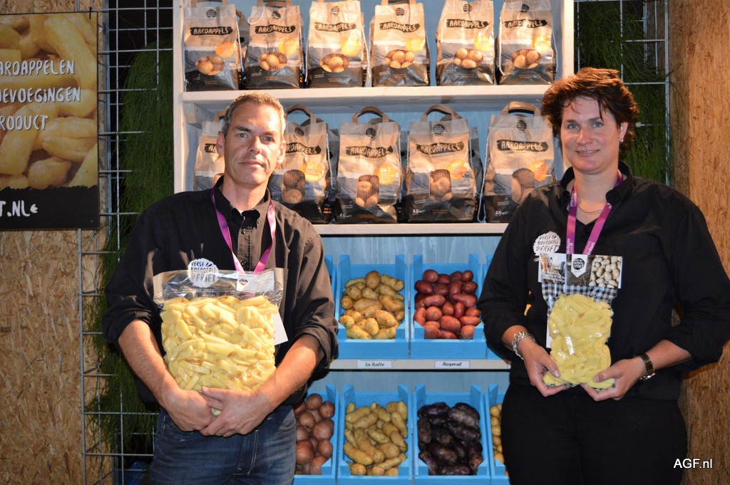 Henk Radewalt en Dicky Veerman van Verse Boerderijfriet, een product van Landbouwbedrijf Coorndijck. Zij de vraag naar vacuüm verpakte frieten en aardappelen toenemen voor oa. zorginstellingen.