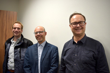 Bart Vannieuwenhuyse van TRI-VIZOR temidden van Maurice Peeters (r) en zijn collega van Scherpenhuizen die de rondleidingen verzorgden.