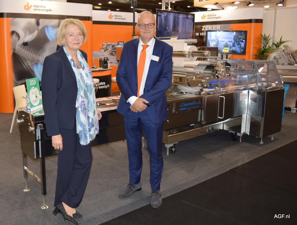 Anneke Werdmuller en Arnold Durville van Dijkstra Vereenigde. Het bedrijf is leverancier van Flowpack en kartonneermachines voor bv tomaten, witlof en asperges.