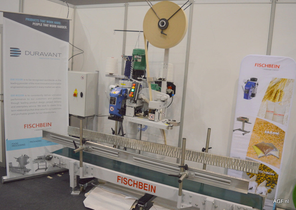Fischbein toonde de MUA naaimachine met transportband voor het sluiten van machines met crepeband/tape. Deze manier van sluiten is geschikt voor zakken met fijne stoffen voor een betere afdichting.