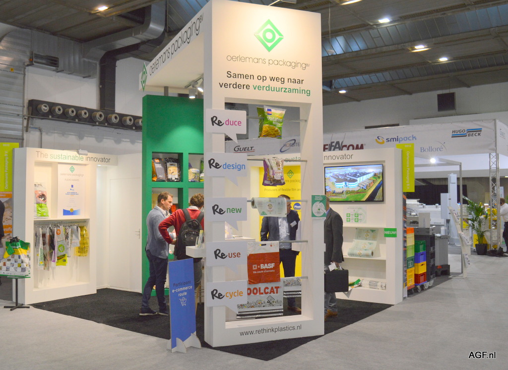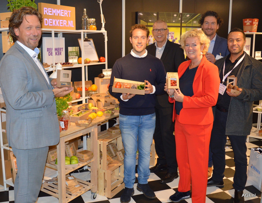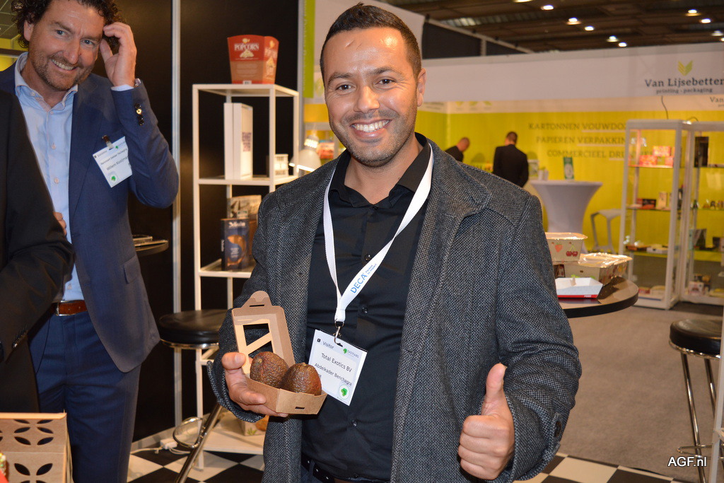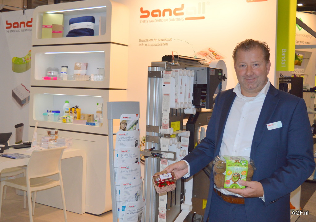 Erik de Roos van Bandall toont een punnet met kiwi's waar een banderol omheen zit. Hierop kan je veel informatie kwijt over het product en sluit tevens het deksel op de verpakking. Ook laat Erik de TomaMuse van Stoffels tomaten zien. Door de banderol wordt het product ook binnen de verpakking gehouden. Zo creëer je een 'dekseltje' waarvoor maar weinig verpakkingsmateriaal nodig is. Ook geeft het een exclusieve uitstraling.