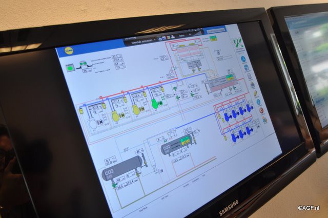 Bijzonder om te zien was de ‘VK controlroom’, waar op meerder schermen alle actuele statussen van koelinstallaties die bij klanten in binnen- en buitenland bewaakt worden. Vanuit deze controlekamer heeft Van Kempen een uitgebreid overzicht van alle installaties en kan er op tijd gereageerd worden op eventuele problemen of calamiteiten.
