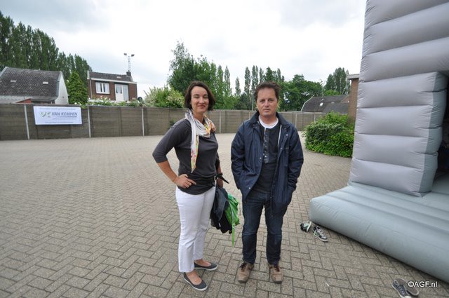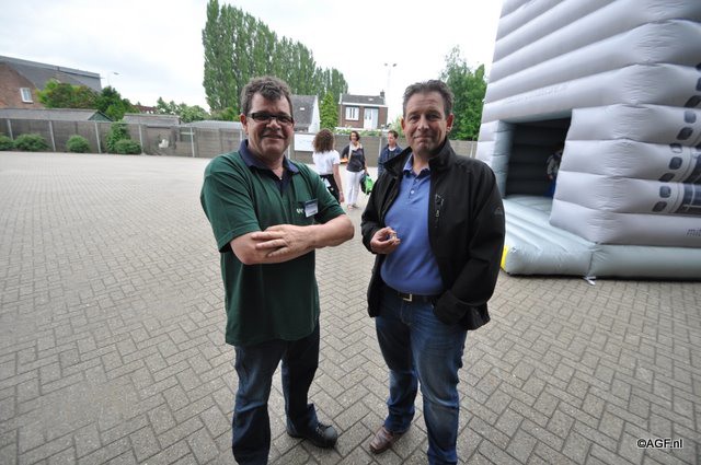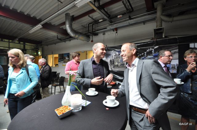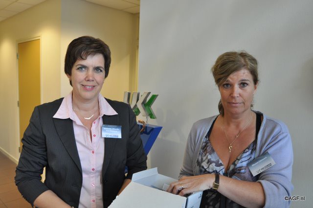 Jeannete Alberda overhandigt namens de personeelsvereniging een groepsfoto aan Jan van Zante