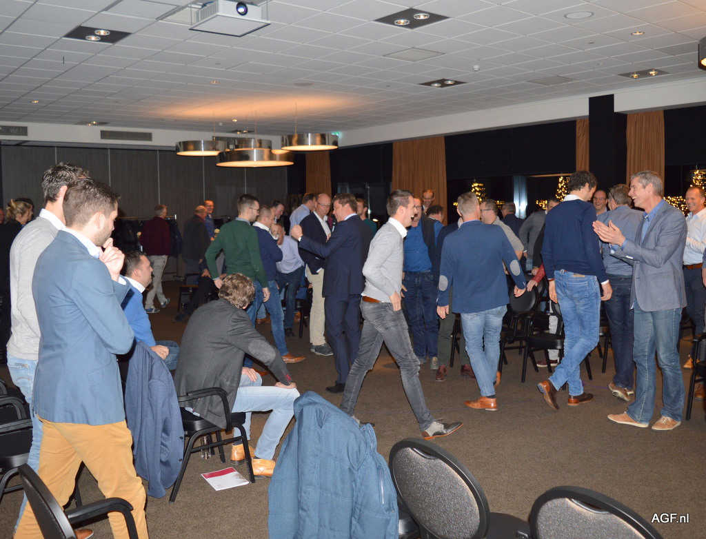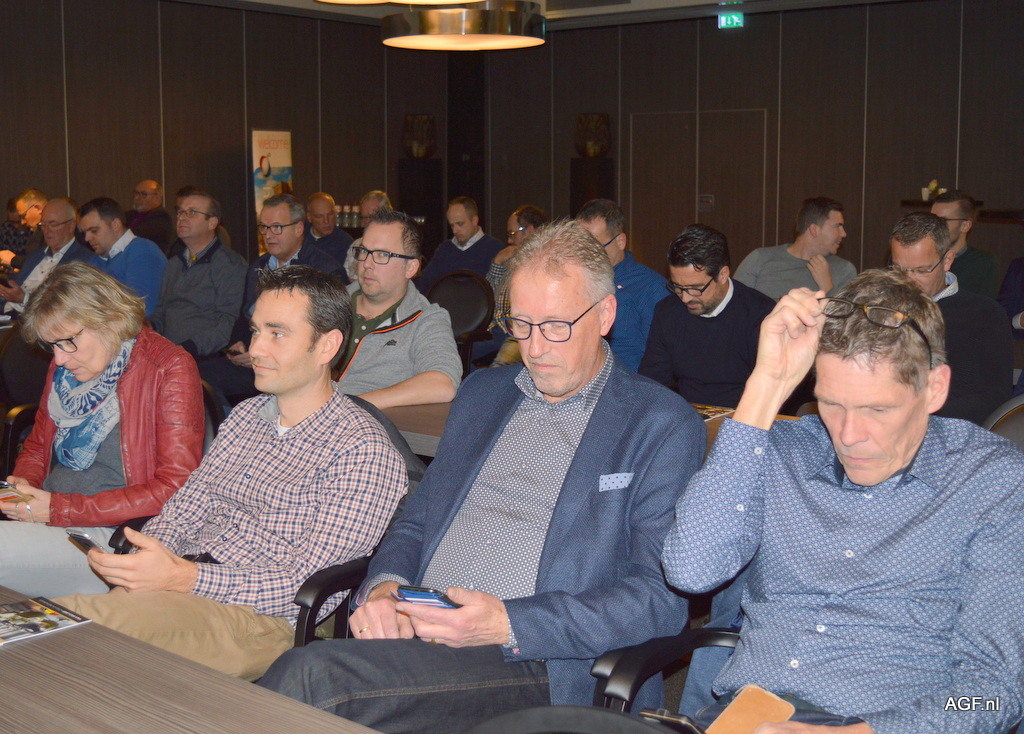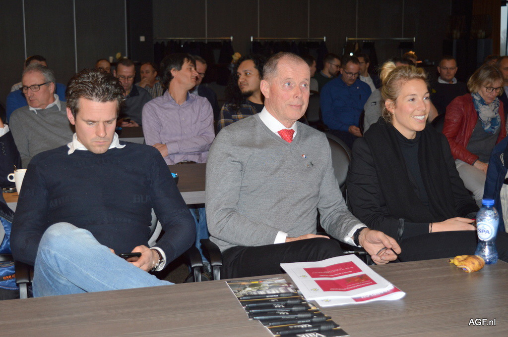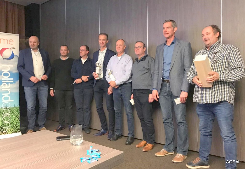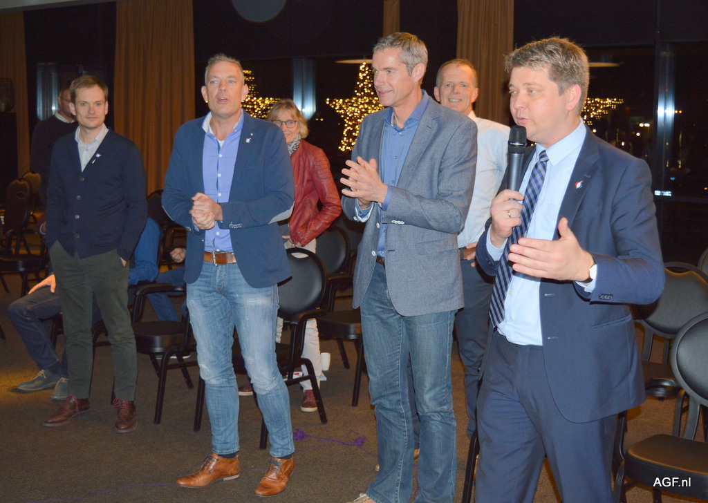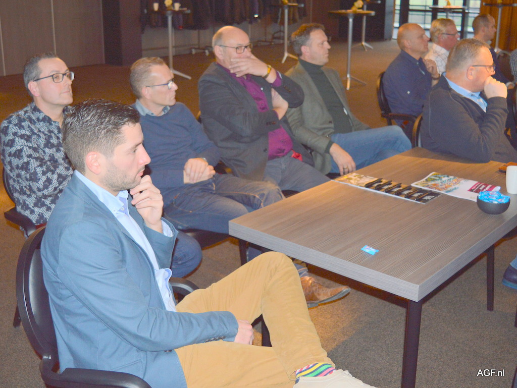 Martijn en Maarten van Damme en Evert Jan Eerland van Dacomex en de enige boer in de zaal: Jaap de Zeeuw