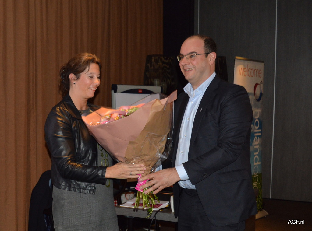 Bloemen voor Inge Ribbens uitgereikt door Koen Nieuwenhuijse van Marbo.