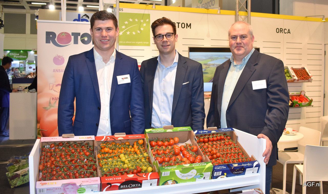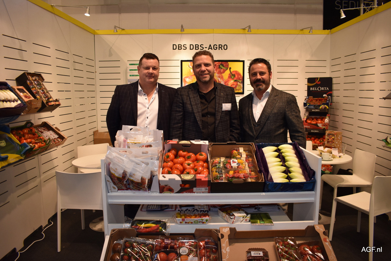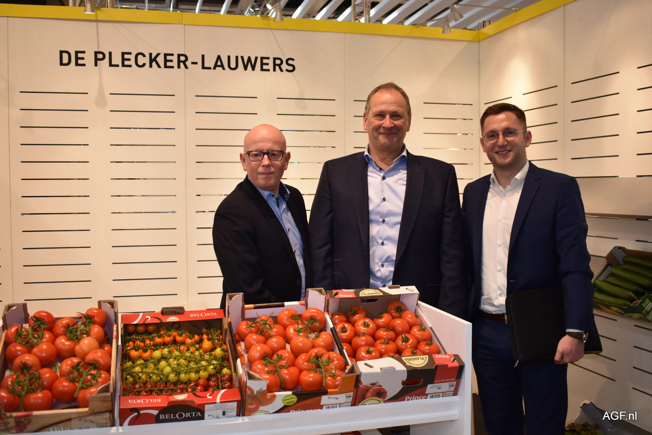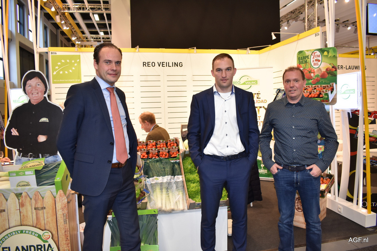 Dominiek Keersebilck en Nick Finaut van REO Veiling en Barry Michiels van Gebroeders Michiels. Het vollegrondsseizoen loopt momenteel goed door. Prei doet het goed, maar witlof daarentegen wat minder. Bij REO Veiling is tomaten momenteel het grootste product en men merkt dat ook door de aandacht naar het product tijdens de Fruit Logistica.