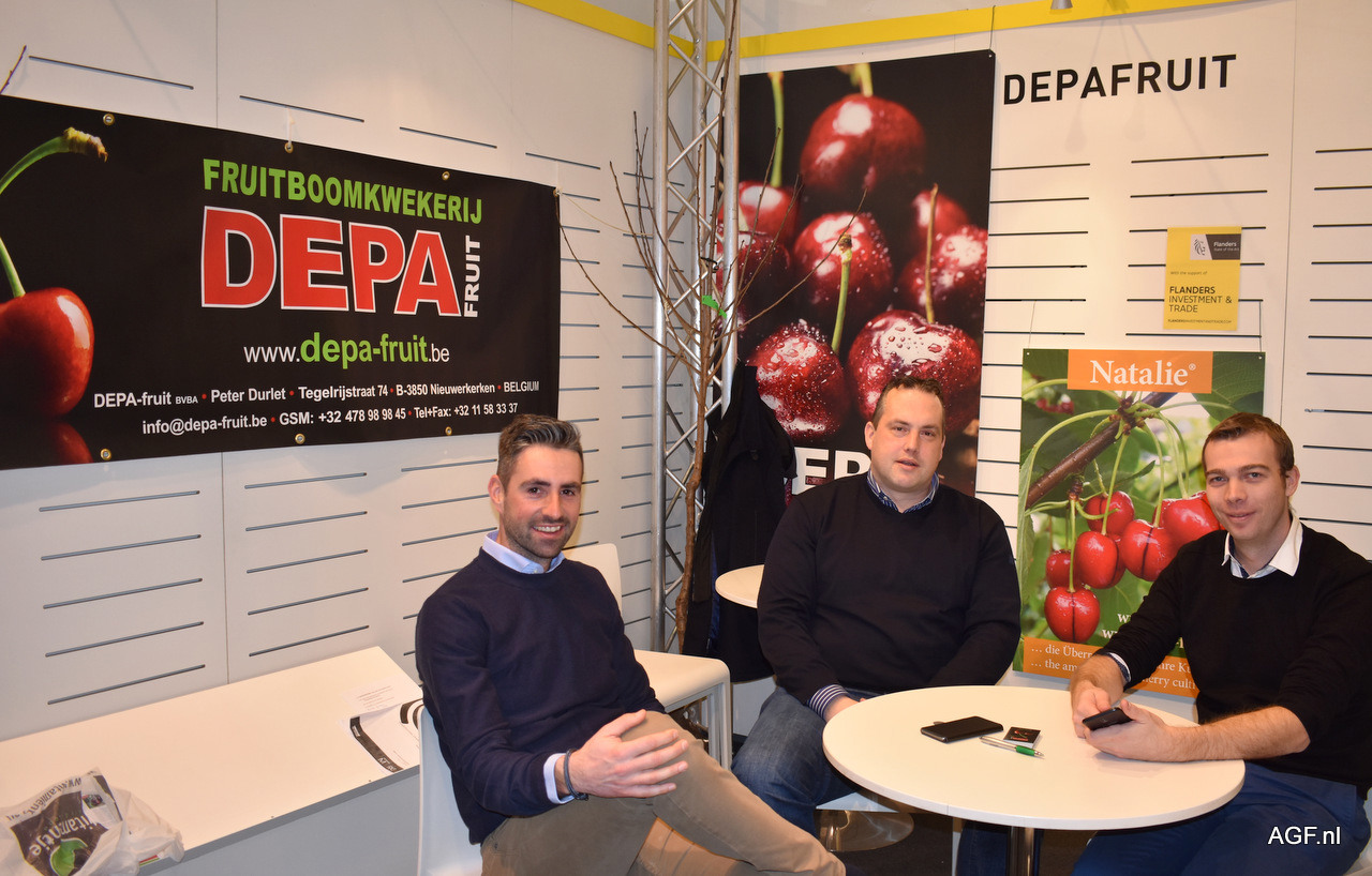 Toon Vanrykel, Peter Durlet van Depa Fruit en Olivier Naudo. Depa Fruit maakt de eerste bomen voor de Natalie-kers, die volgend jaar op de markt komt. De kerst is mooi rood met een zwarte streep en is een variatie op de Regina.