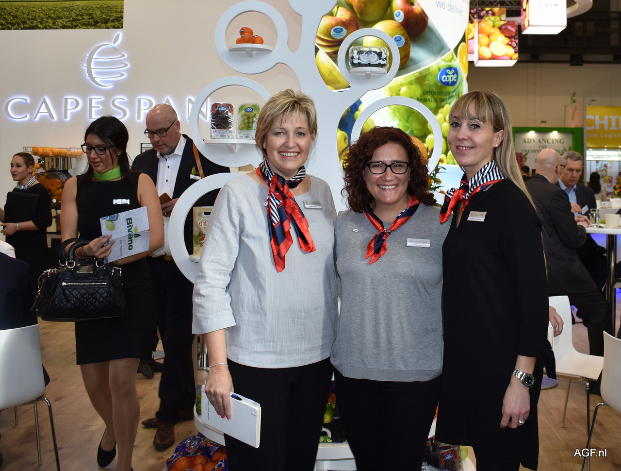 De dames van Capespan Denise Venter, Hanli Smit en Stephanie De Puysseleir. Gems is het nieuwe merk van Capespan voor zacht citrus.