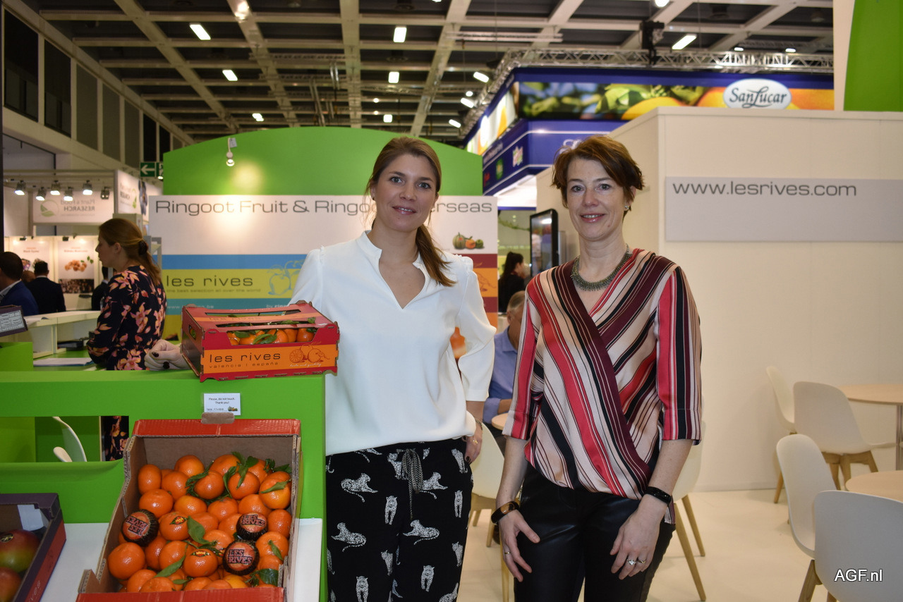 Virginie Sparenberg van Ringoot Fruit en Veerle Van der Sypt van FVPhouse. Volgens Virginie is het deze beurs interessant om leveranciers te ontmoeten.