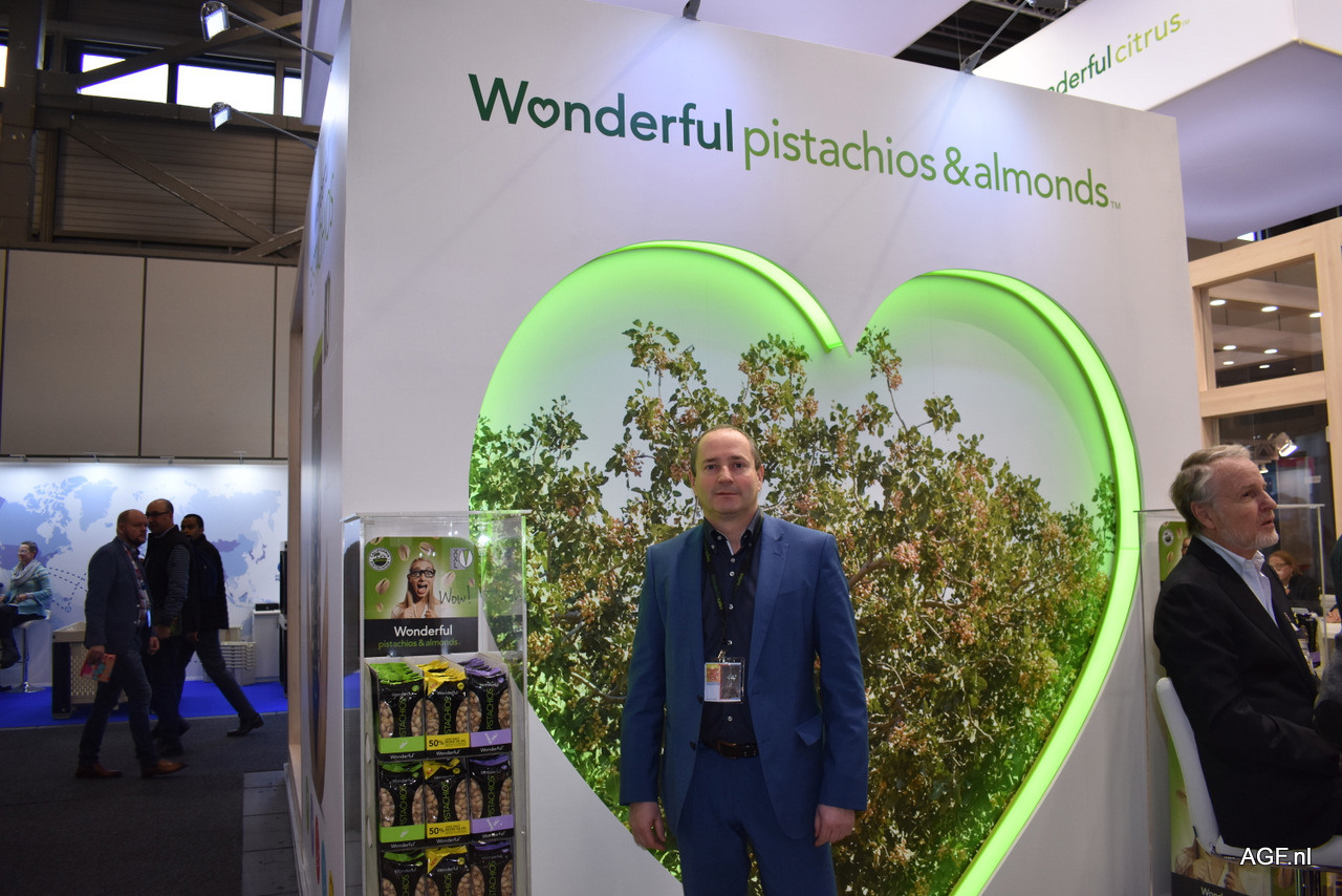 Tom Hazelof van Wonderful ziet dat er buiten, maar ook op de beurs veel aandacht is voor de pistache zonder schil. Ook zal het bedrijf opnieuw de Italiaanse markt betreden.